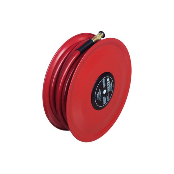 Red Hose Reel Disc With Fire Hose Reel Nozzle Plastics Powder Coating Images |