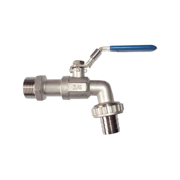 Stainless Steel Ball Bibcock Tap with Blue Lockable Handle Hose Sleeve End Images |